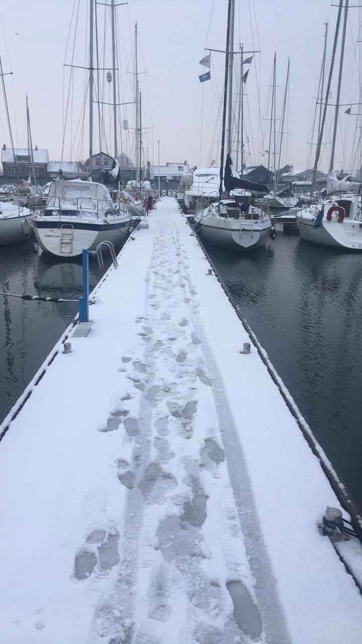 (Zeil) maat Tom, alias Butra, rijdt naar DJ om waterbakje leeg te maken. Winterse omstandigheden, bedankt Tom!